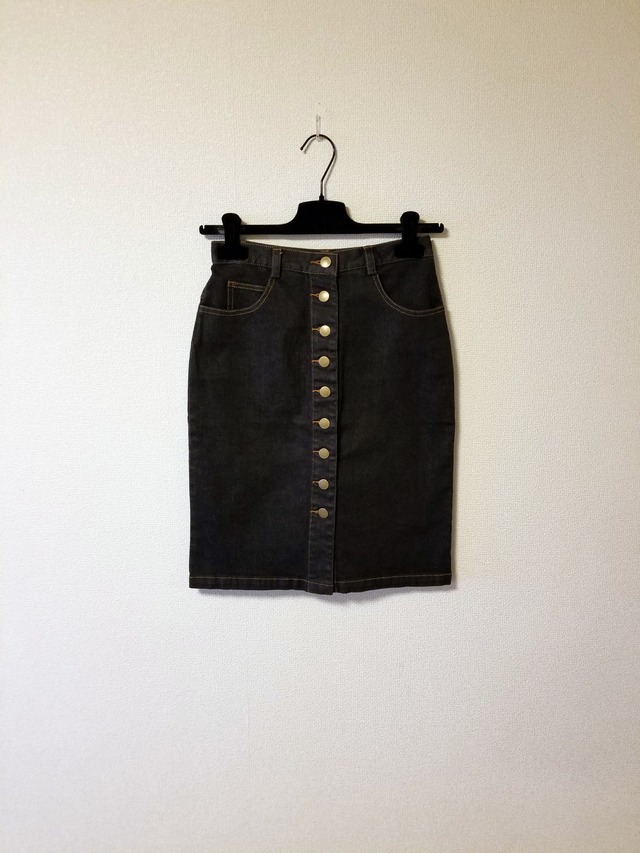 フロントボタンデニムスカート ブラック 伸縮性のある生地なので、着脱しやすくなってます 綺麗なラインのデニムスカートです