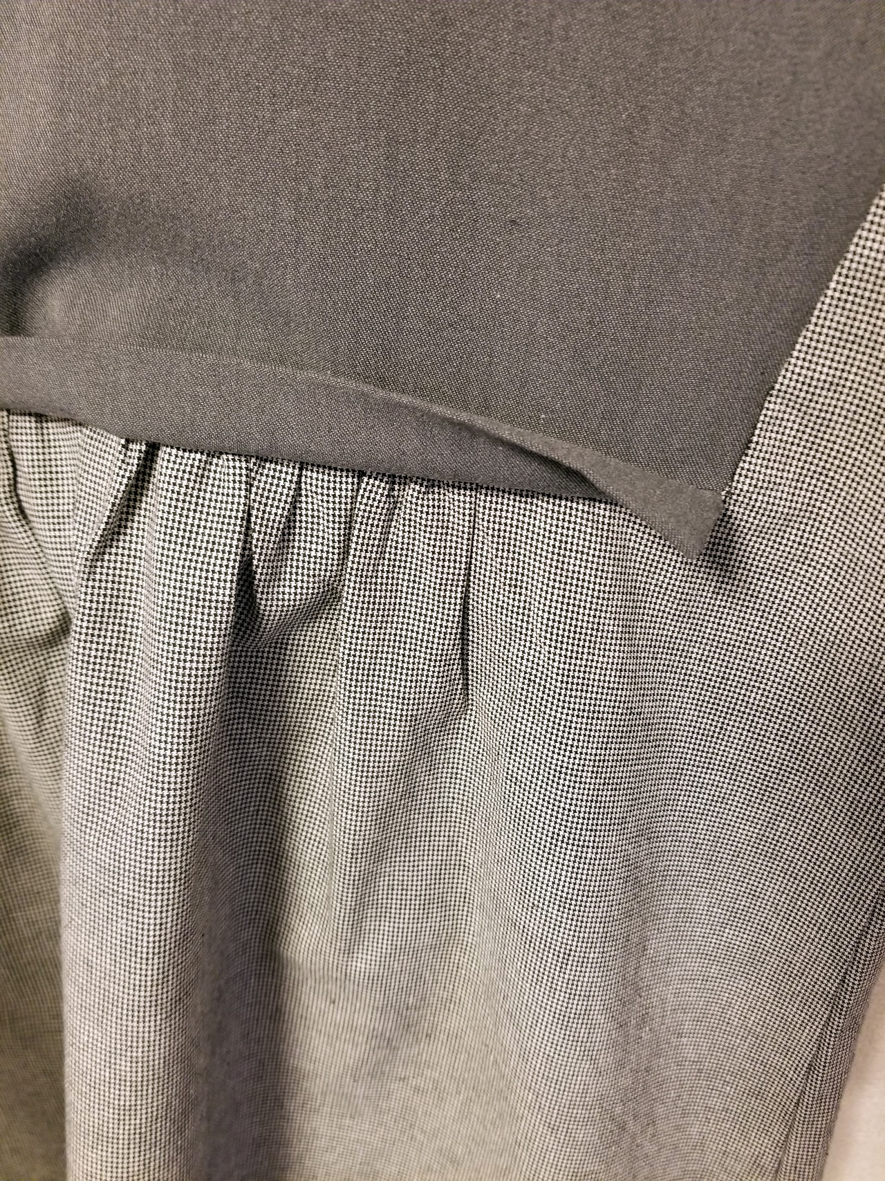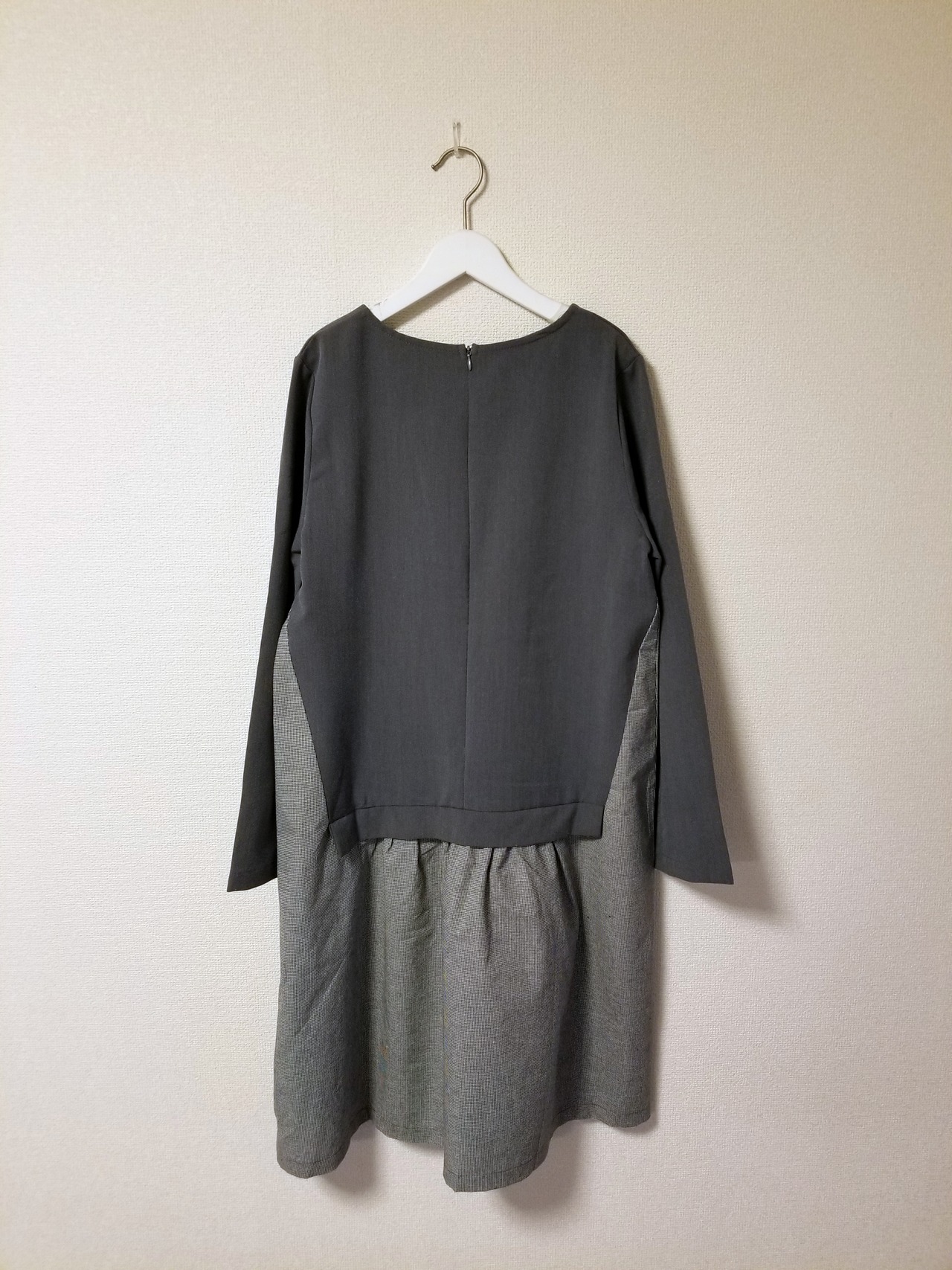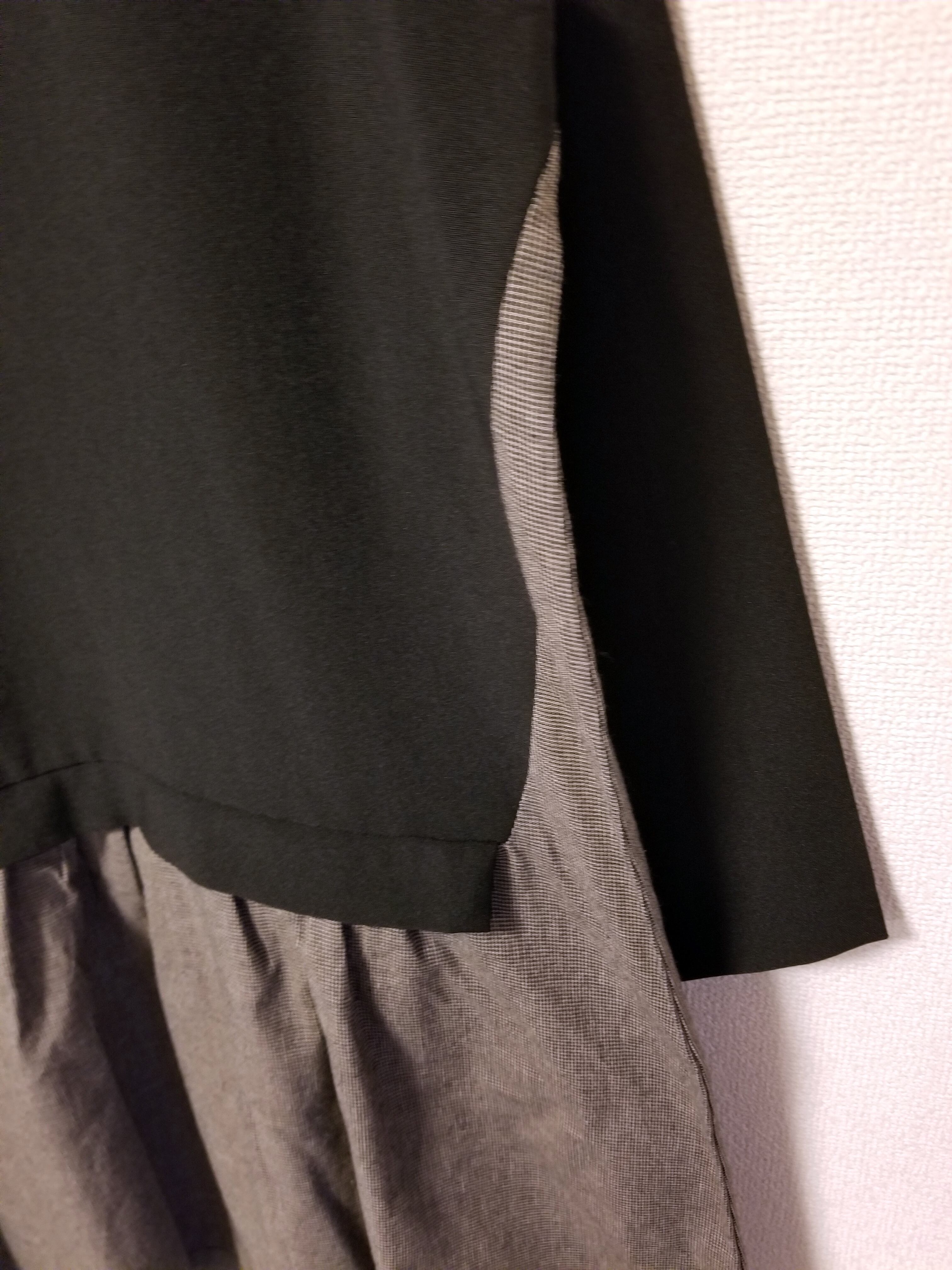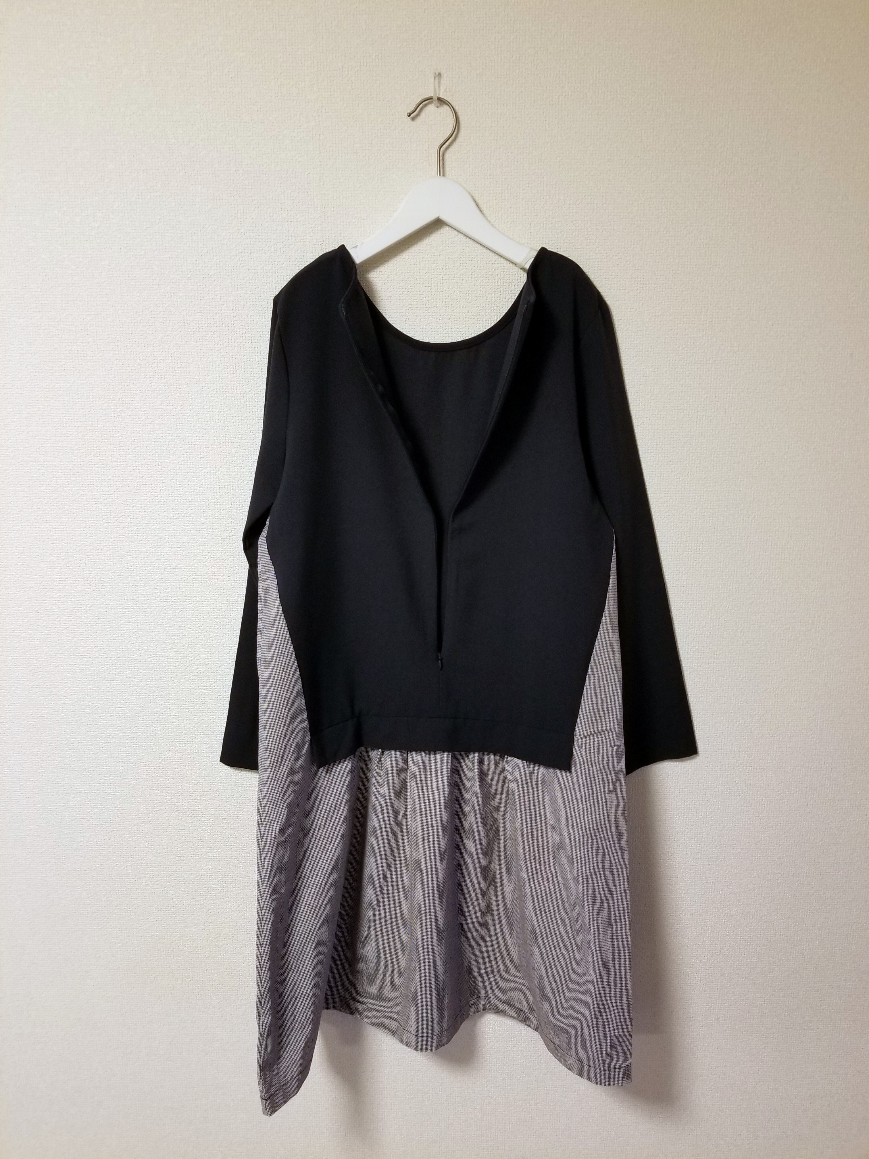 Aライン無地×千鳥柄ドッキングワンピース ブラック グレー ネイビー