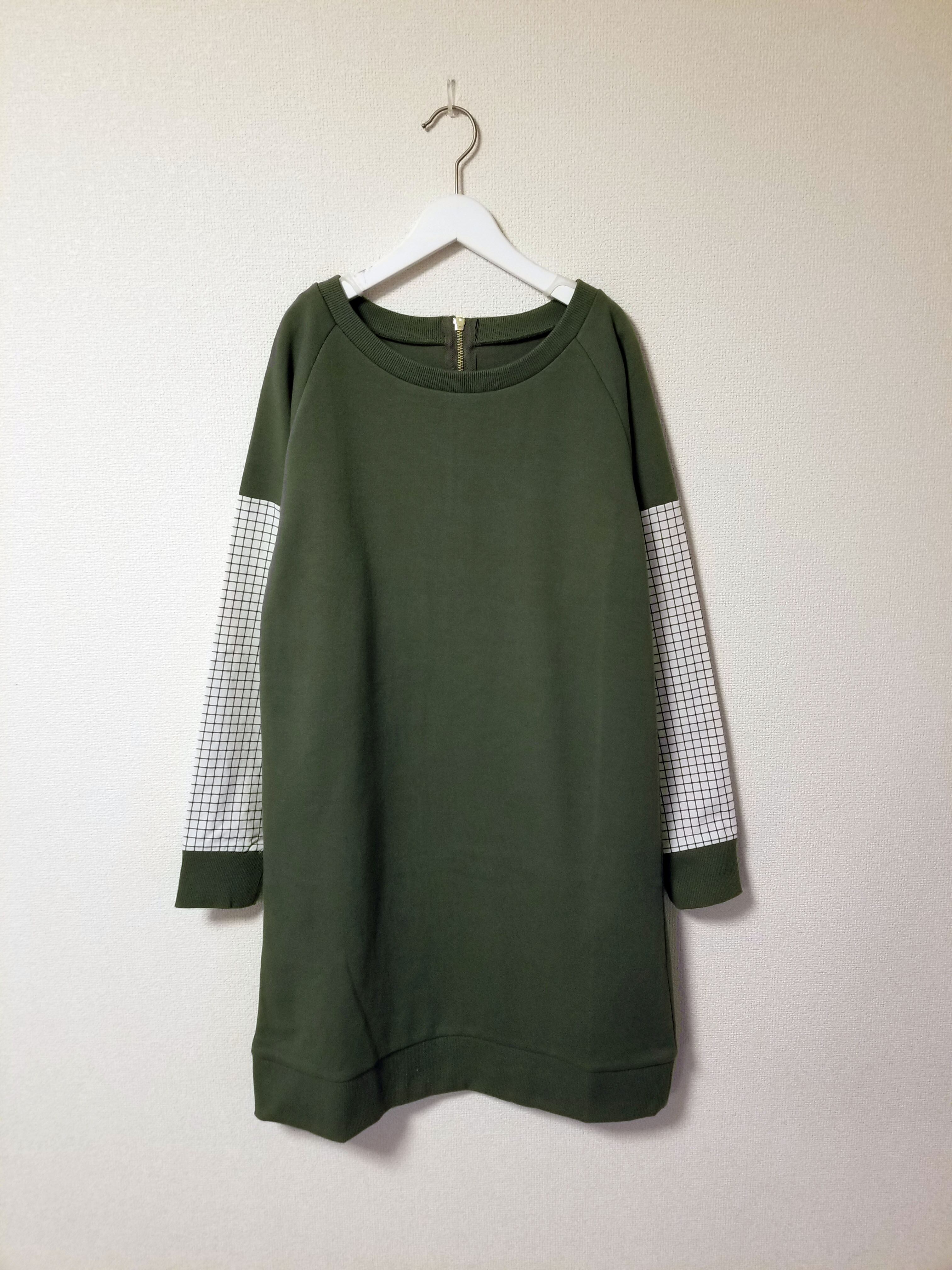 袖切替スウェット風ワンピース カーキ レッド ネイビー | cara calla