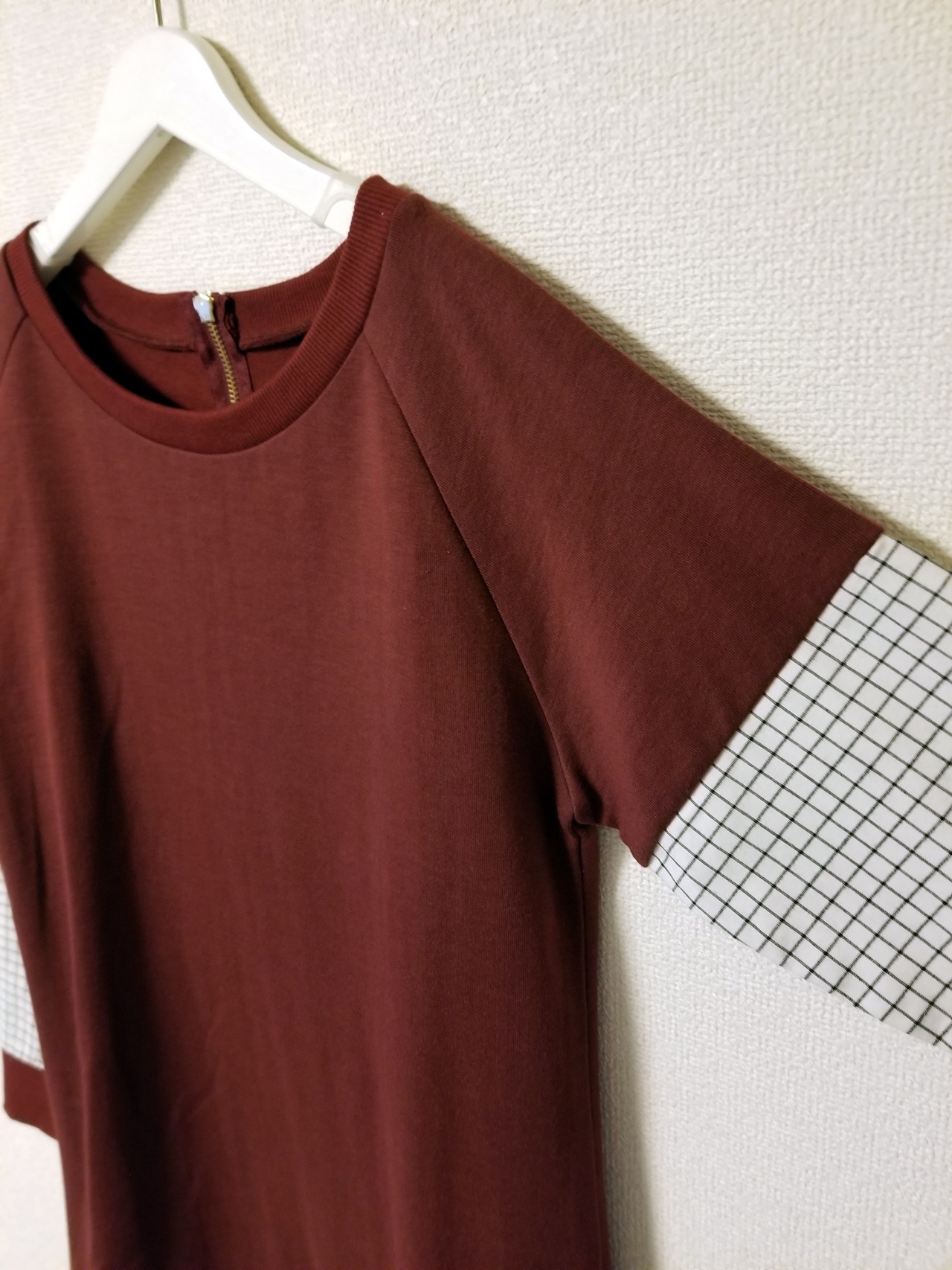 手触りの良い上品なスウェット風の生地です 袖が切り替わっていて1枚でコーディネートが完成