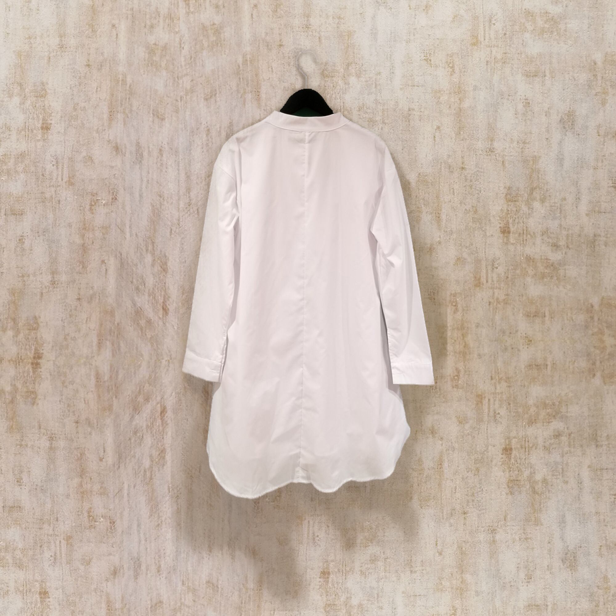 身頃に垂れたフラップが特徴のシャツチュニック。