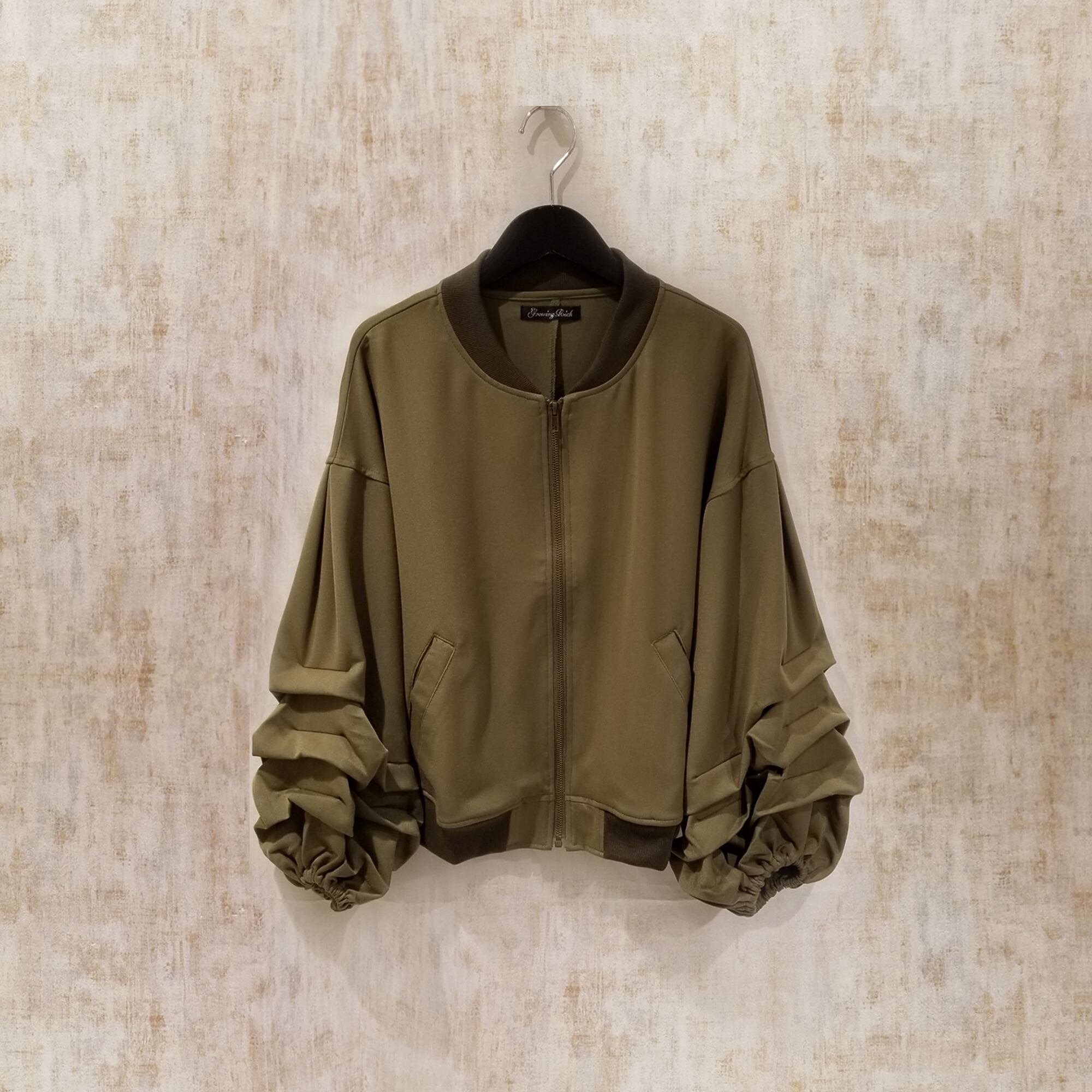 袖のボリュームあるギャザーが可愛いミリタリーブルゾン。