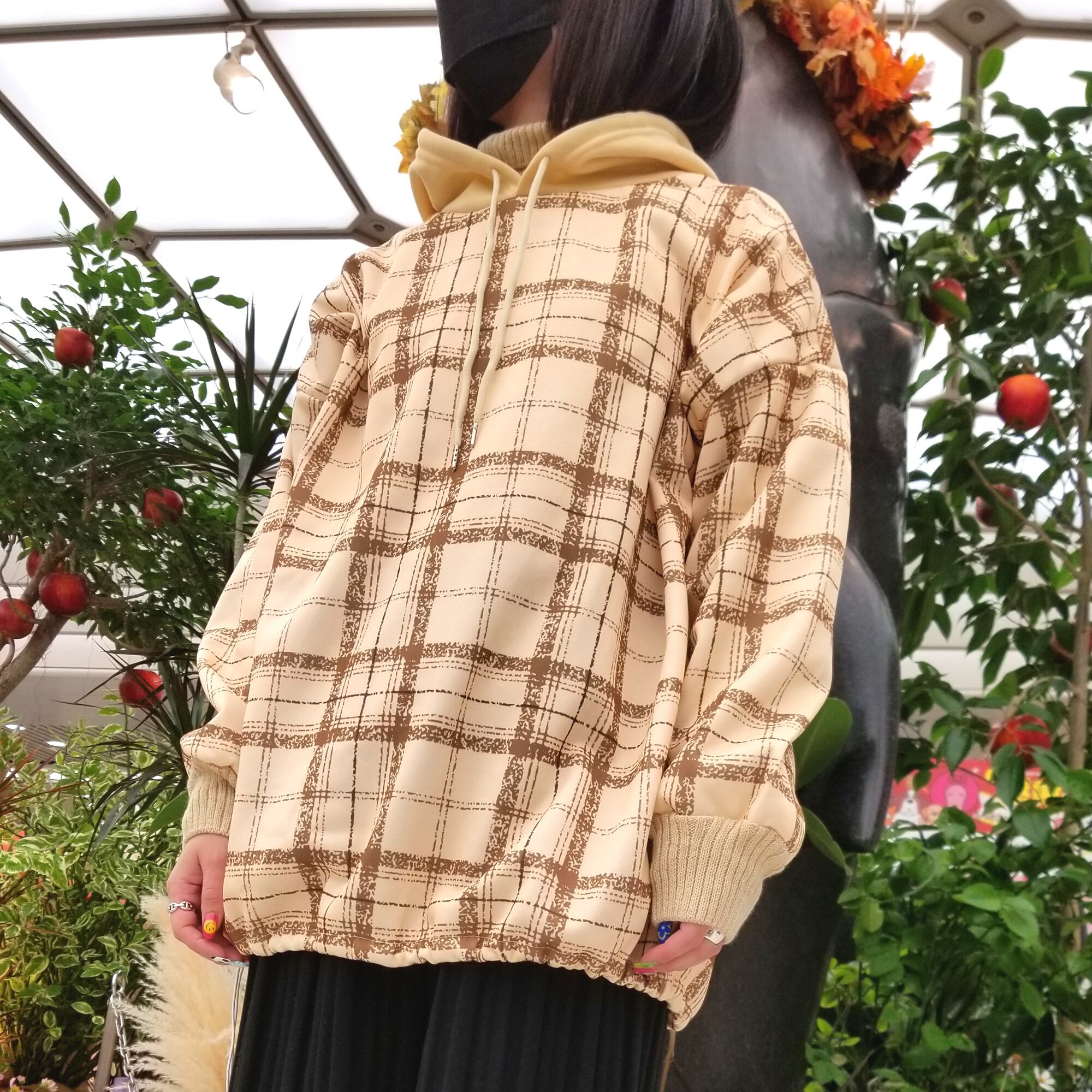 プリントのチェックがルーズなシルエットにマッチしていて◎